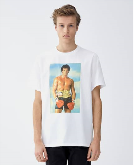 Nestas imaxes no que máis nos fixamos son nas camisetas tanto do rapaz como da rapaza, observamos que a camiseta que viste a rapaza é mais "femenina" xa que o debuxo que representa é sobre a "bella durmiente" e a que viste o rapaz é máis "masculina" porque nela vemos representado o boxeo, deporte que se asocia ao home debido a que ó home é asociada a forza, que o simboliza o famoso boxeador Rocky Balboa.